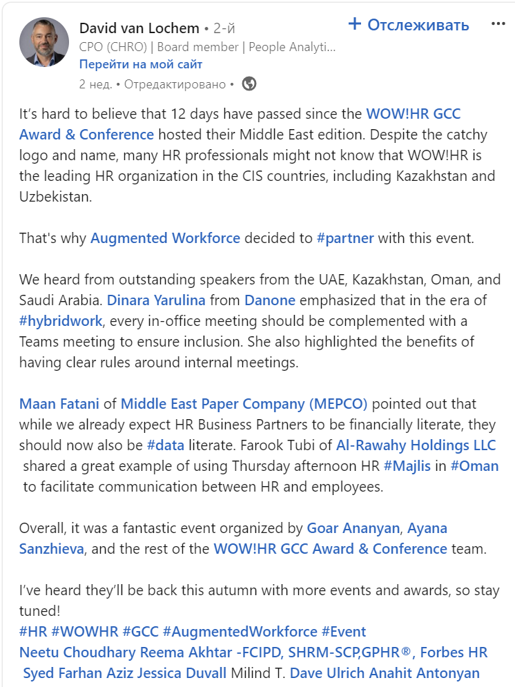 The mission of WOW GROUP is to unite the global HR community, collect and broadcast the best practices of human capital management through its educational projects.